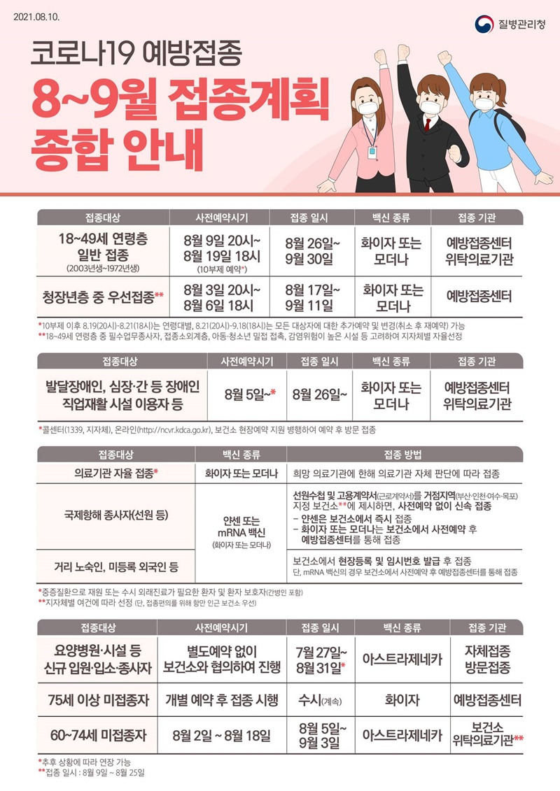 May 27, 2021 · 코로나 백신 사전예약 시스템에서는 예약 취소만 가능하며, 날짜변경은 안됩니다. May 12, 2021 · 코로나 19 예방접종 방법 (연령별 백신 접종시기, 백신 접종 사전예약) 1. 그래서 제가 사는지역의 코로나19 예방접종 콜센터와 질병관리청 콜센터에 전화를 해봤는데, 전화연결이 계속 안되더군요. 코로나 19 예방접종 코로나 19 예방접종은 전 국민들을 대상으로 백신 공급과 접종 상황을 고려하여 우선순위에 따른 예방접종을 순차적. Jun 01, 2021 · 30세 미만 화이자 백신 접종 예약이 다음주 부터 시작된다.
